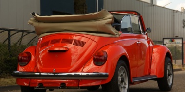 ORANGE PEEL Een van de 331.847 exemplaren door Karmann in Osnabrück gemaakte cabriolets: een ’73-er Kever 1303. Typerend aan Karmanns exemplaren zijn de neerdraaibare achterzijramen en de rechthoekige chromen scheerraampjes. Nog typerender is de huidige staat: compleet gerestaureerd. Nu zelfs in nog strakker oranje: aanpak lakstofjes en -structuur (sinaasappelhuid). De bijbehorende capuchon helder en fris.Lees meer...